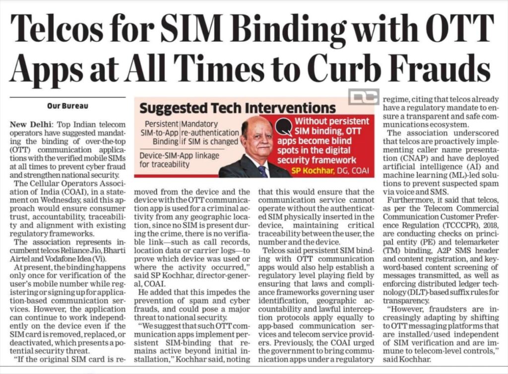 Telcos for SIM Binding with OTT Apps at All Times to Curb Frauds CA Dungar Chand U Jain | August 9, 2025 | Frauds | No Comments 221 Related Posts Global banks like HSBC, JPMorgan Chase, Standard Chartered moved illicit funds, FinCen documents show No Comments | Sep 21, 2020 New online shopping scam: How you may get cheated after delivery of product No Comments | Jun 17, 2019 MCA summons Gautam Thapar, auditor and other key personnel of CG Power amid fraud probe No Comments | Sep 3, 2019 Know 14 types of online frauds and precautions to be taken No Comments | Aug 12, 2021 About The Author CA Dungar Chand U Jain Add a Comment Cancel replyYour email address will not be published. Required fields are marked *Comment:*Name:* Email Address:* Website: