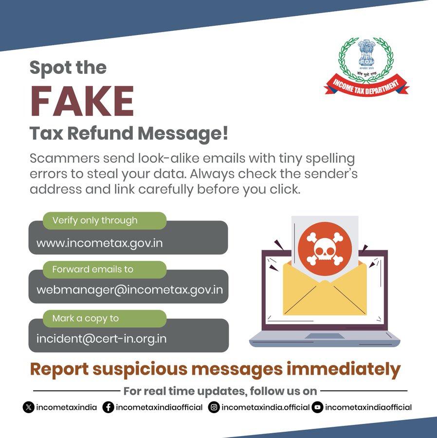 ✔️Forward suspicious mails to: webmanager@incometax.gov.in