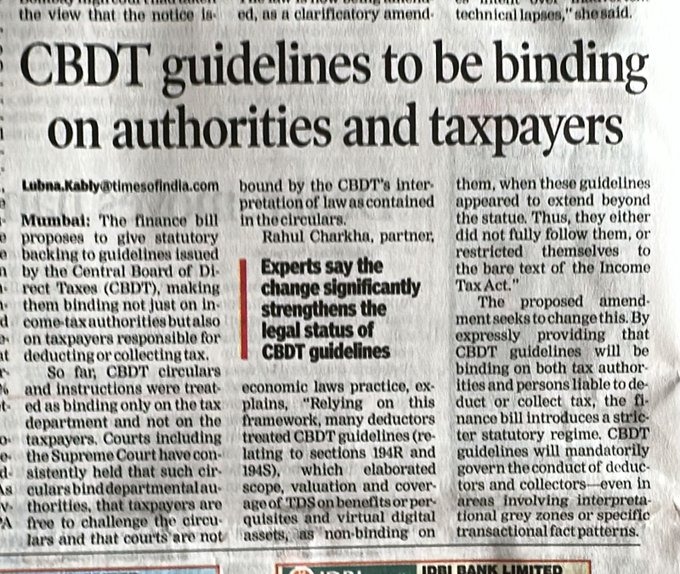 The Finance Bill proposes a major change by giving statutory backing to guidelines issued by the CBDT, making them mandatory for both tax authorities and taxpayers. Historically, these circulars were only binding on the tax department, while taxpayers remained free to challenge them or rely strictly on the bare text of the Income Tax Act.