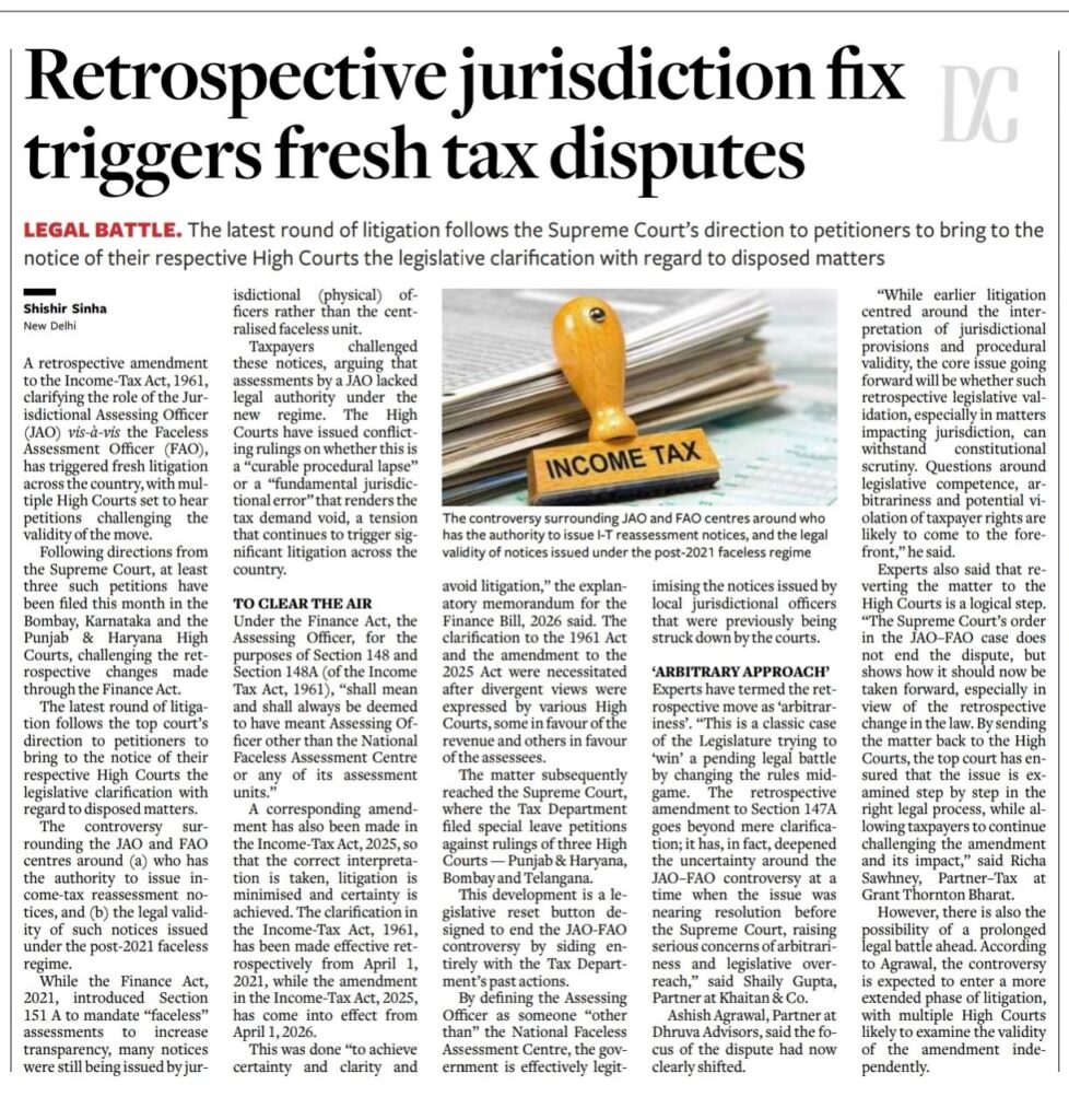 Retrospective jurisdiction fix triggers fresh tax disputes CA Dungar Chand U Jain | April 20, 2026 | ICAI MEMBERS | No Comments Retrospective jurisdiction fix triggers fresh tax disputes 90 Related Posts Extension-Unstructured Learning No Comments | Jun 28, 2021 Combating the animosity towards auditors No Comments | Aug 28, 2019 Carrying out scrutiny of Straight Through Processes (STP) – MCA No Comments | Mar 22, 2021 NFRA PASSES DISCIPLINARY ORDER ON STATUTORY AUDITORS LEVYING RS 1 CRORE PENALTY TO FIRM AND RS. 10 LAKH TO RS. 5 LAKHS ON ENGAGEMENT TEAM No Comments | Apr 15, 2023 About The Author CA Dungar Chand U Jain Add a Comment Cancel replyYour email address will not be published. Required fields are marked *Comment:*Name:* Email Address:* Website: